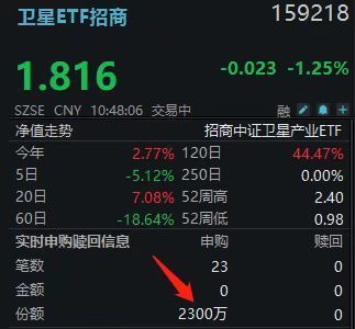 4月28日早盘,卫星板块震荡调整。截至10时49分,卫星ETF招商(场内:159218)下跌1.25%,但资金逆市抢筹态势明显——据Wind数据估算,该ETF盘中净流入近4200万元,已连续2日获资金净流入,累计超7100万元。年初以来累计净流入约26.7亿元,长线资金持续看好。