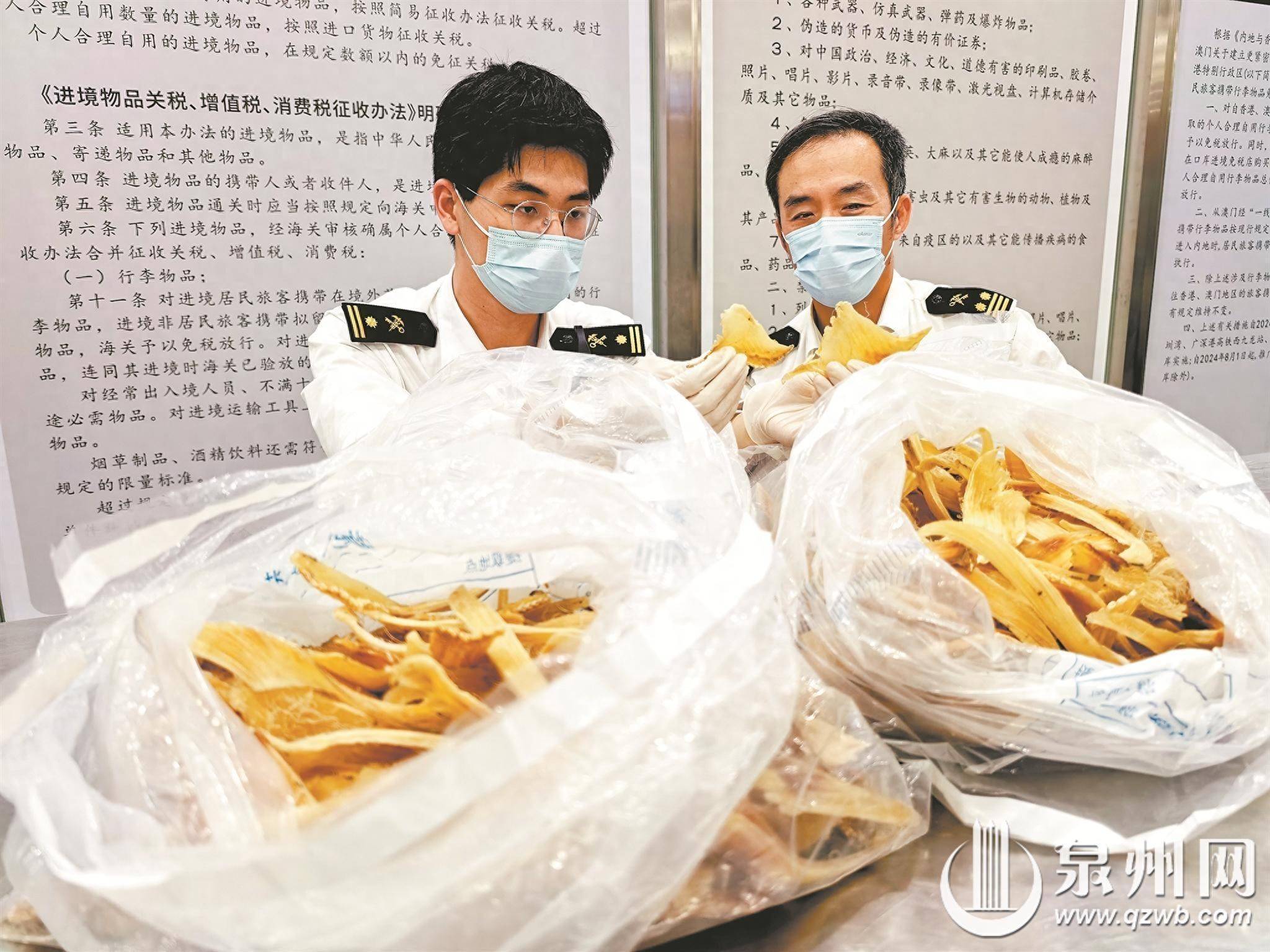 近日,记者从泉州海关获悉,4月13日,经专业机构鉴定,泉州海关在旅检渠道查获旅客违规携带进境的一批鱼翅干,确认为濒危物种大青鲨鲨鱼翅干,总重9.4公斤。这是泉州口岸今年以来查获的最大一起旅客违规携带濒危动物制品案件。